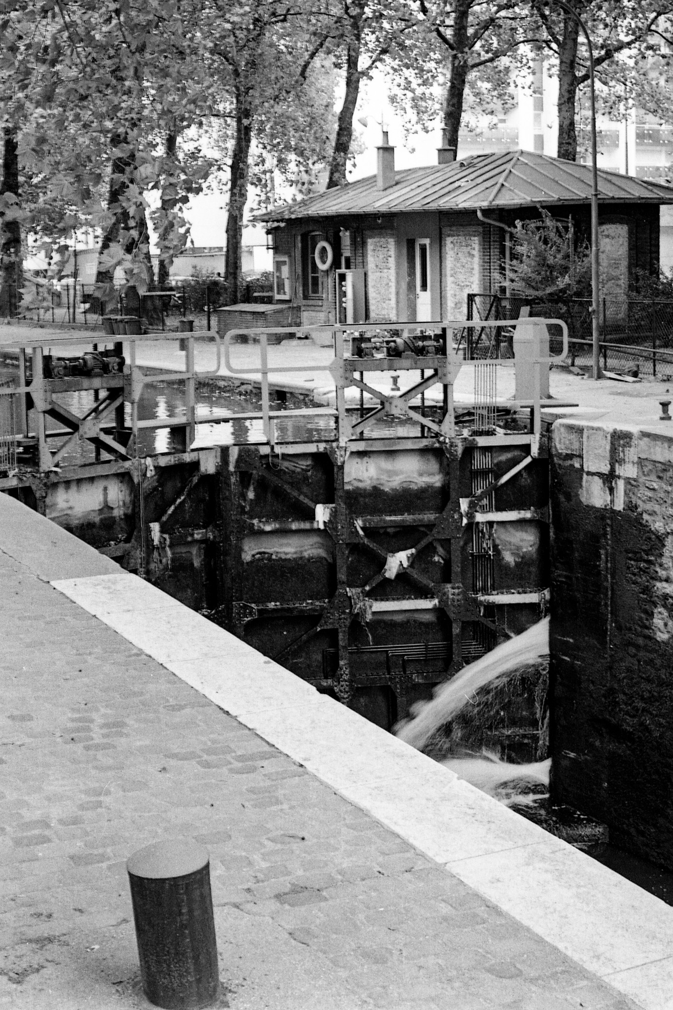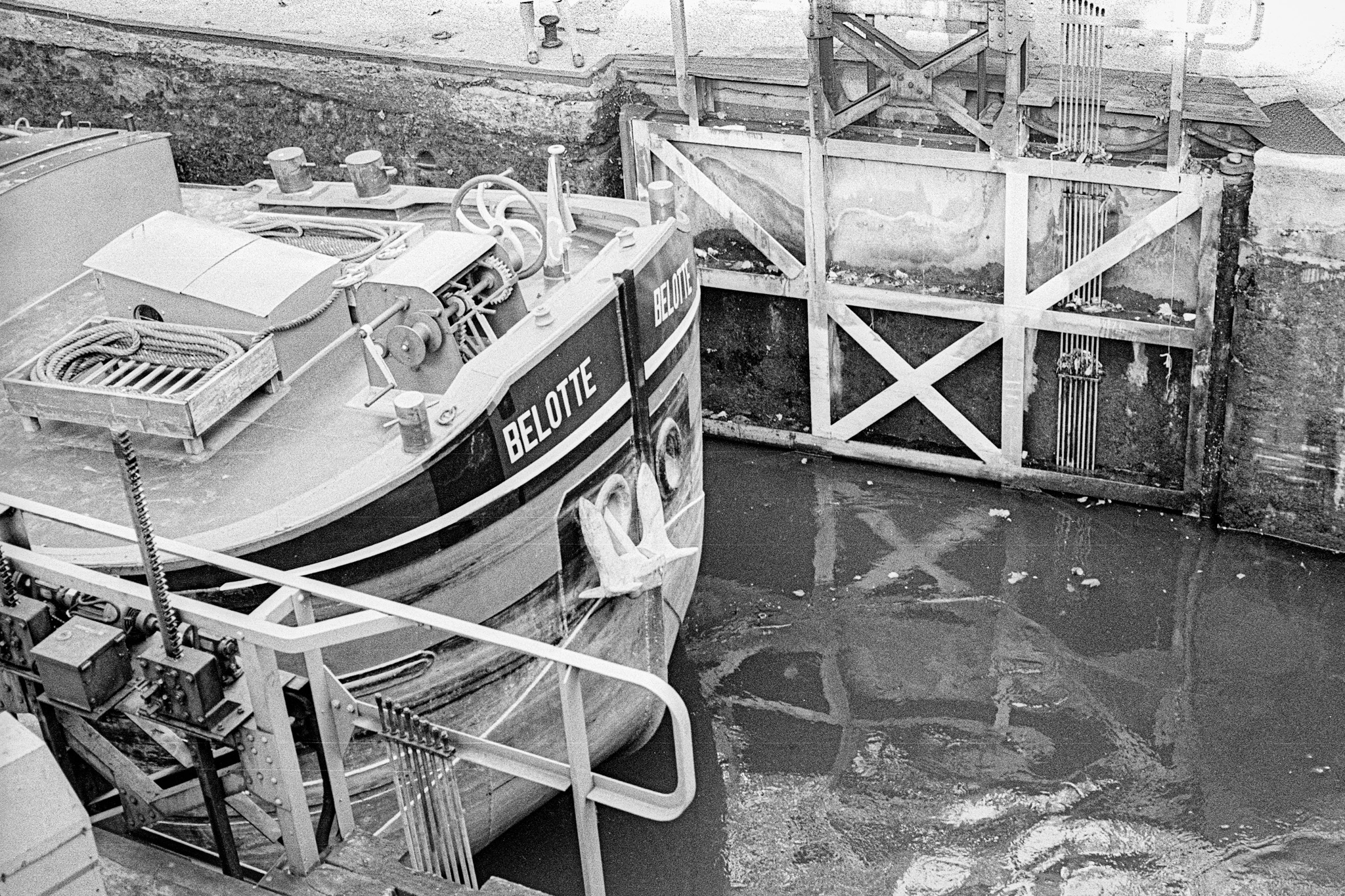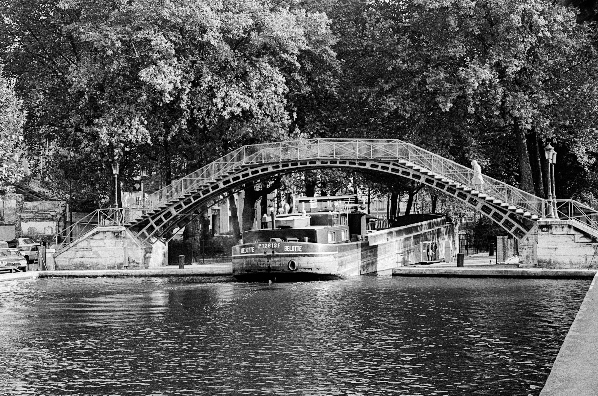 Ce jour là j'ai fait une longue sortie le long du canal Saint-Martin. J'ai obervé un passage d'écluse par une péniche. J'utilise mon nouveau boitier le Nikon FM, je ne dispose que d'un 50 mm.
