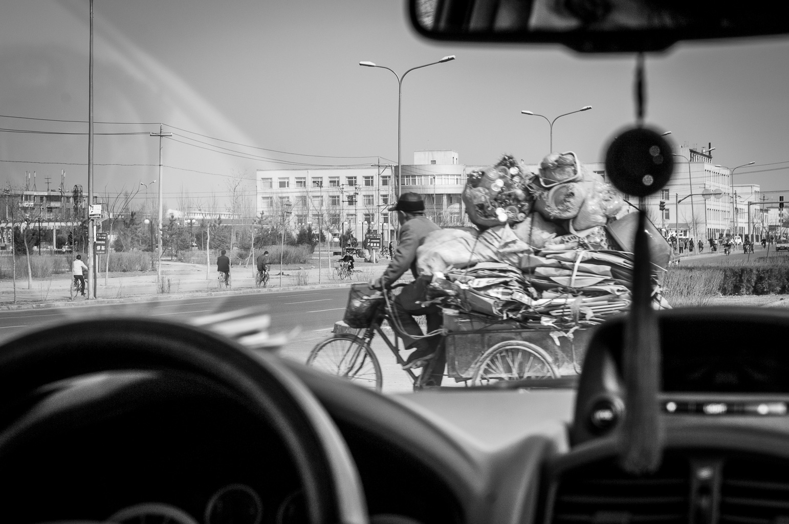 A 18h45 je suis bien calé dans mon siège. Le Boeing 777 d'Air France s'ébranle et décolle en douceur pile à l'heure. Inutile de regarder par le hublot il fait déjà noir. En prenant l'apéro j'essaye de regarder le dernier James Bond. Désolé James mais tu es vraiment trop pénible. J'ai bien faim alors je profite du diner en essayant la spécialité chinoise "poulet sauce aigre-douce et riz". Autant e mettre dans le bain tout de suite. Le dessert est servi aux environs de Stockholm et le calvados vers Gdansk. Ensuite je dors comme un bébé jusqu'au petit-déjeuner servi au dessus de Oulan Bator capitale de la Mongolie. Je remonte le volet du hublot. Juste en dessous il y a comme une ville fantôme. Sous la neige, on devine des structures qui n'ont rien de naturelle.