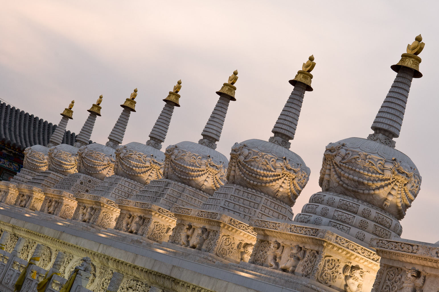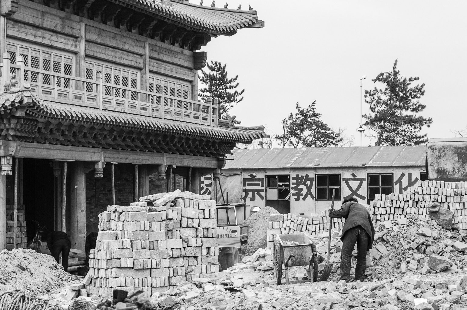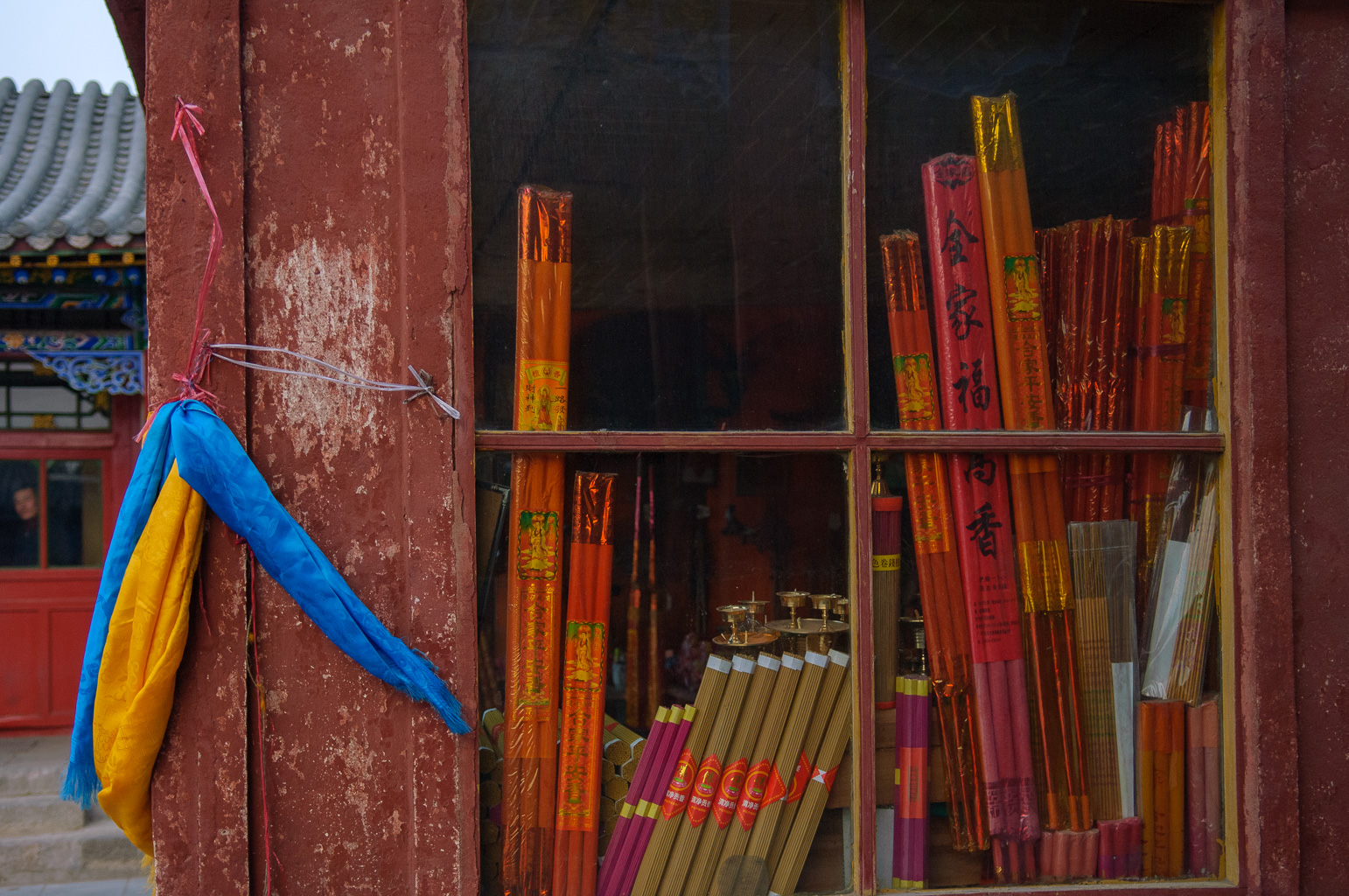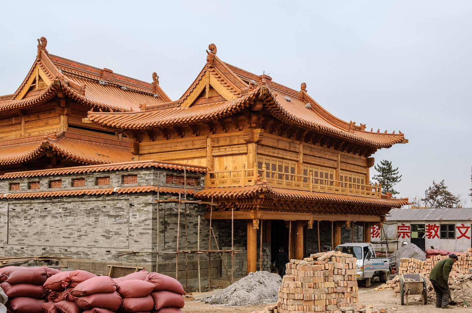 17 mars 8h: même pas mal à la tête! je jette un oeil dehors, le paysage n'est pas inoubliable! je suis en pleine forme pour un petit déjeuner faits de plats chinois délicieux. ensuite boulot, visite d'usine, discussions, promesses... blabla, on verra bien dans un ou deux mois ce qu'il en restera. 14h la partie boulot est terminée, nous allons au restaurant - coréen. notre hôte s'éclipse un moment et revient les bras chargés de quatre bouteilles. je pense, j'espère en fait qu'il s'agit d'un cadeau. quatre bouteilles, quatre invités, le compte semble bon. seulement l'idée était toute autre, hier deux bouteilles, alors aujourd'hui quatre, et demain ? je n'ose pas imaginer, de toute façon nous serons partis. le plus dur reste à faire, ne pas perdre la face… ne n'ai pas perdu la face mais j'ai rarement été aussi pété de ma vie, pire qu'à séville il y a deux ans. le bon côté des choses est que je n'ai pas été malade et que je n'ai même pas eu mal à la tête. ils sont forts ces chinois ! a ce moment je ne savais pas que le pire était à venir, quelques jours plus tard. Quand nous sortons de table, il fait encore jour, nous avons le temps de visiter un temple avant de reprendre l'avions pour pékin. je marche presque droit, je sais encore où se trouve le déclencheur sur mon appareil alors tout va bien!